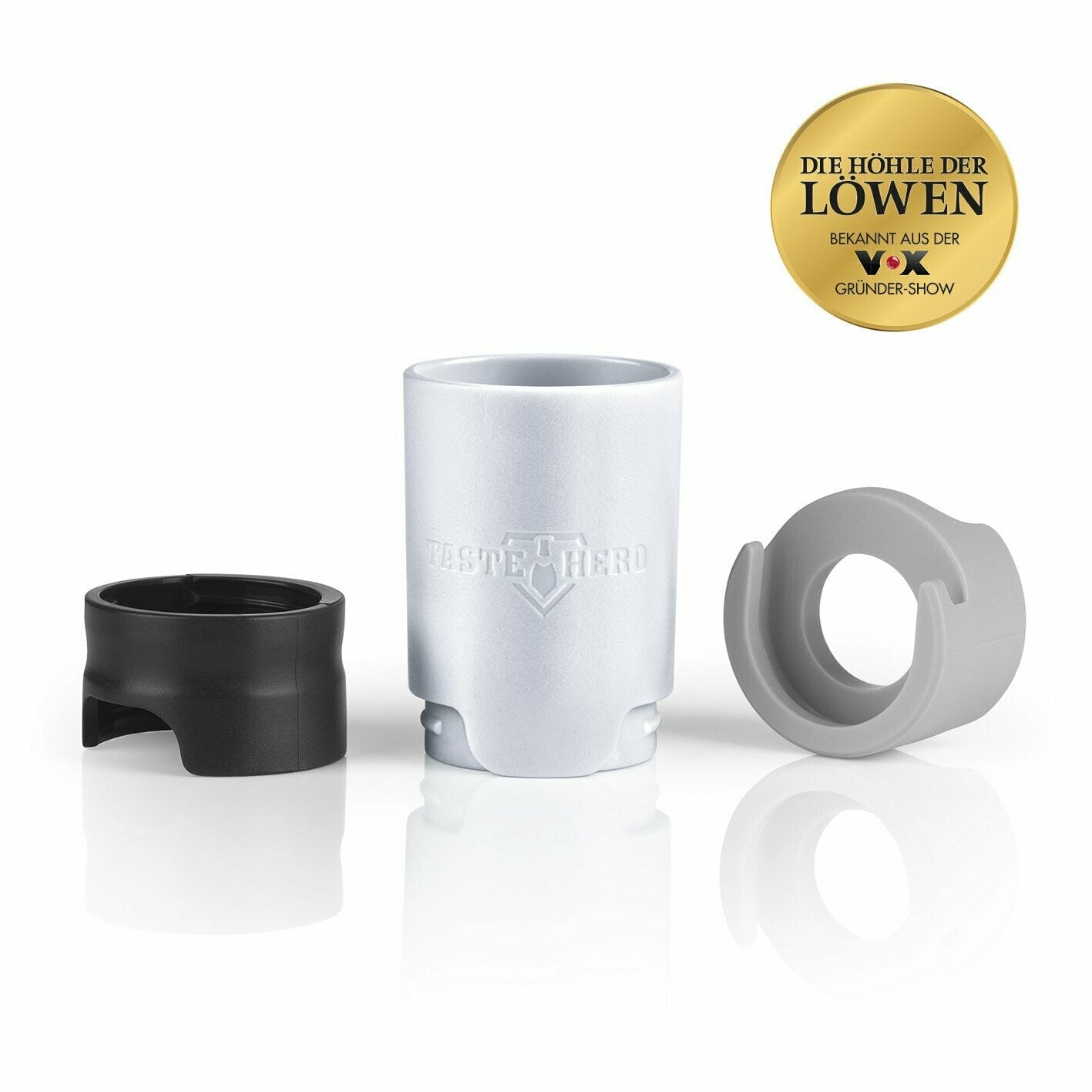 Frisch gezapft schmeckt Bier am besten - da sind sich wohl alle Liebhaber des "kühlen Blonden" einig. Mit dem Taste Hero muss für dieses Geschmackserlebnis aber niemand mehr gleich eine Zapfanlage zu Hause aufstellen oder bei Bierdurst in die nächste Bar eilen. Der faszinierende Flaschenaufsatz wird einfach auf den Flaschenhals des Lieblingsbiers gesteckt und verwandelt es direkt beim Einschenken. Ein cleverer Mechanismus mit einer Art Siebstruktur verwirbelt das Bier und lässt so den in der Raumluft vorhandenen Sauerstoff intensiver darauf einwirken.