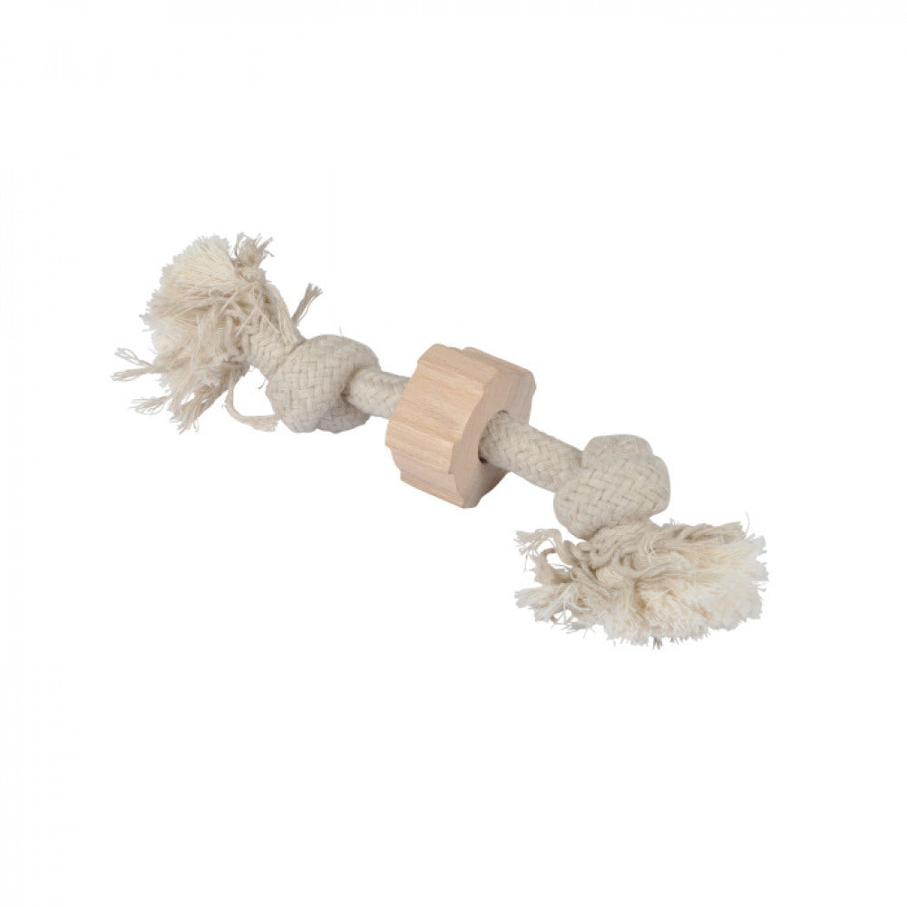 Baumwollseile und -knoten sind ein beliebtes Hundespielzeug. Ob zum Apportieren, zum Werfen oder für Zieh- und Zerrspiele, sie bieten abwechslungsreiche Spielmöglichkeiten, die Hund und Herrchen oder Frauchen Spaß machen. Dabei sind die Spielzeuge aus natürlichen Baumwollfasern und Naturholz sehr robust.